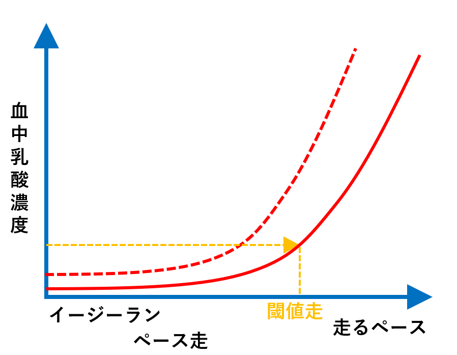 ランニングのペースを上げて行くと血液中の乳酸濃度が高くなります。