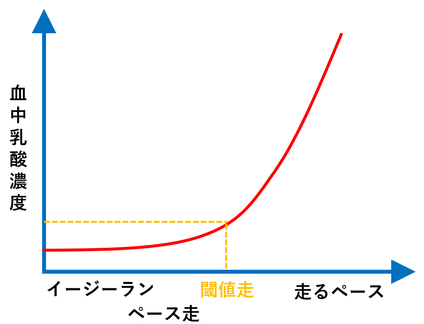 グリコーゲンの分解で生じた乳酸をエネルギーとして利用するペースを、乳酸が生じるペースが上回り始めるペースで走ることを閾値走といいます。