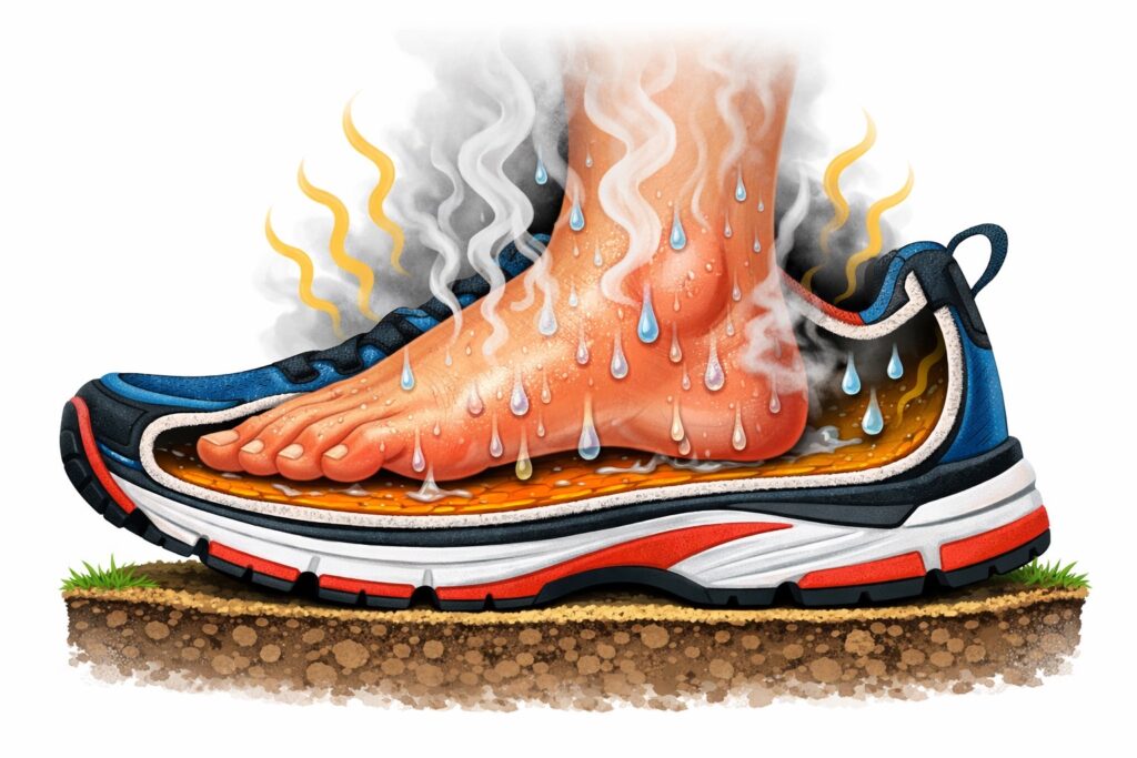 足の皮がめくれてしまう原因の多くはシューズ内の「蒸れ+摩擦」によるもの。走っていると汗をかきますが、シューズ内の足も例外ではありません。